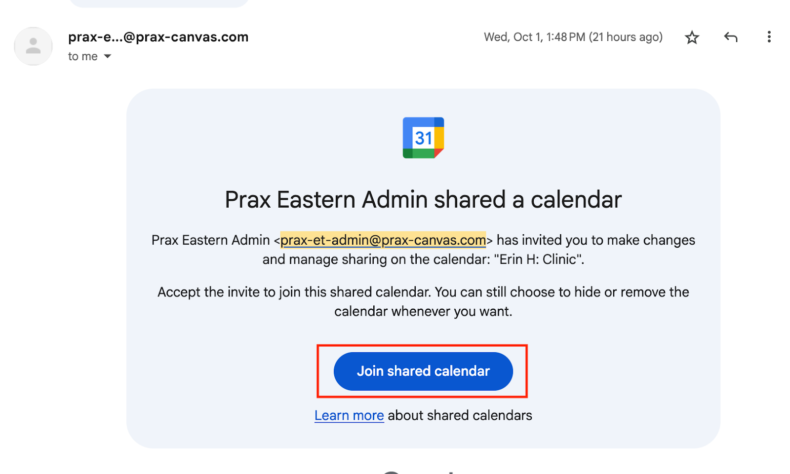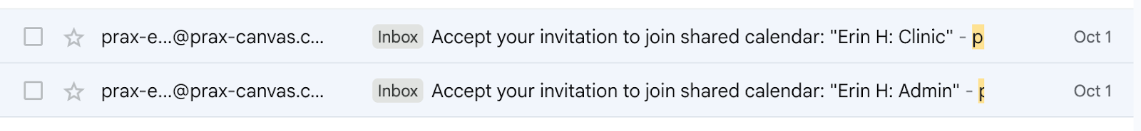 - Accept both the Clinic and Admin calendar invites from your email inbox.